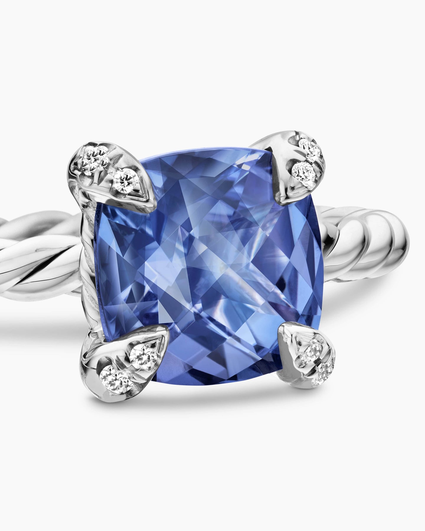 Be bold and beautiful with the breathtaking blue hues of the most intriguing and desirable gemstone of modern times. Tanzanite is at least 1000x rarer than diamond due to its formation from unusual geological activity in one location and its stunning spectrum of velvet blue shades. Each pavé set white diamond draws the eye to the exquisite colors and extraordinary properties of this prized gem.